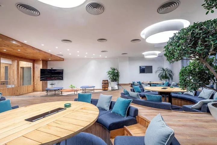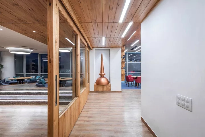 现代办公室已由从前枯燥乏味的格子间式大空间,发展至当下灵动多元且活力有趣的开放式协作空间。在印度的古鲁格拉姆市,由Design Plus设计团队为William Grant & Sons(格兰父子洋酒公司)所打造的办公室就是这样一个非常出色、极具创意的工作空间。