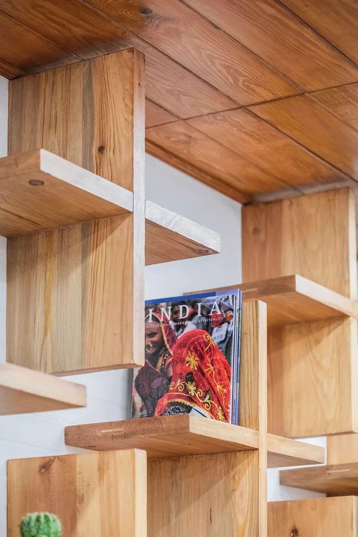室内所用的装饰主材灵感来自酿酒厂,温暖的实木与黑色扁钢即形成了材质对比,也象征着连接。这两处特殊空间即各具特色,同时又统一在温暖的木色中。 地址:印度 古鲁格拉姆 面积:205平方米 时间:2018年 摄影:Vibhor Yadav Tags:洋酒制造商,印度、升高地台、圆形下沉式协作区、木制咖吧长桌、温暖木色