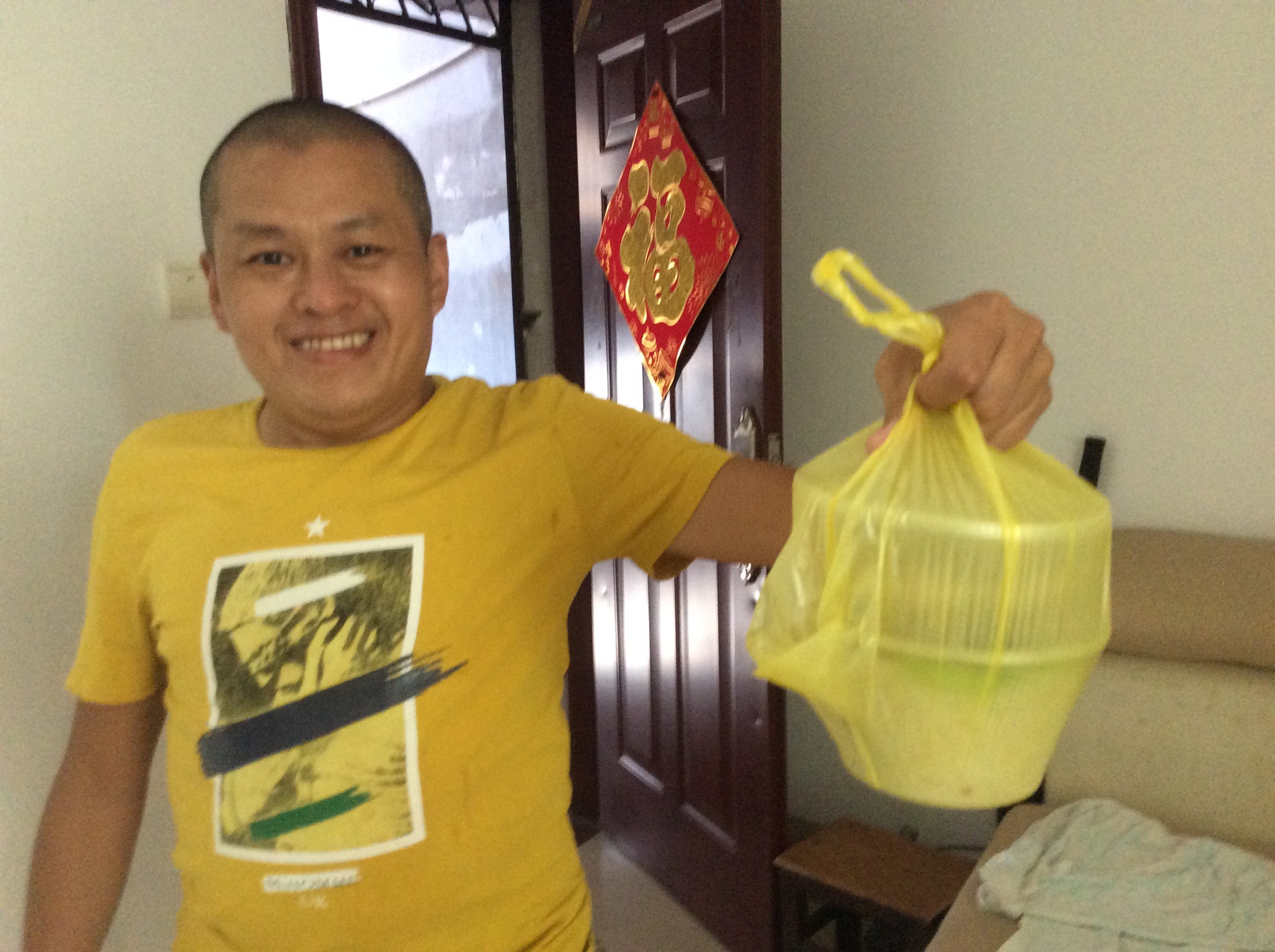 「这斗(趟)要住多久?」他没带手机,我找了半天没找到钞票,后来他瞄到茶几上有,边接钱边问。