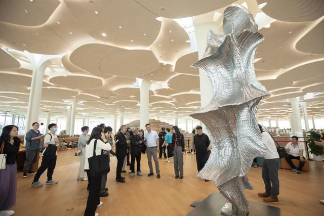 2024年4月21日,“睿寻--北京城市图书馆首届公共艺术展”在位于北京副中心新近落成的北京城市图书馆的公共空间与大家见面。展览由北京城市图书馆主办,北京画院院长吴洪亮主持策划,邀请了徐冰、隋建国、白明、史金淞、丘挺、费俊、林岗、张伟、郅敏、谭坦等艺术家参展,展品形式包括装置、雕塑、多媒体互动艺术等多种形态。