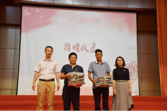 讲话后由曾梅书记和龚宁波教授一起,将19级新生踊跃捐献的军训服500套捐赠给番豆村村民,驻村王基鸿书记和符雷鸣村长做为代表接受了捐赠。仪式的最后,番豆村儿童代表和第一临床学院学生党员合唱《歌唱祖国》,用幼稚天真的童音,表达了对祖国繁荣富强的期望,和对未来更加美好生活的向往。随后,全场嘉宾和同学们共同观赏了第一临床学院第五届“唱响国魂”合唱比赛决赛。
