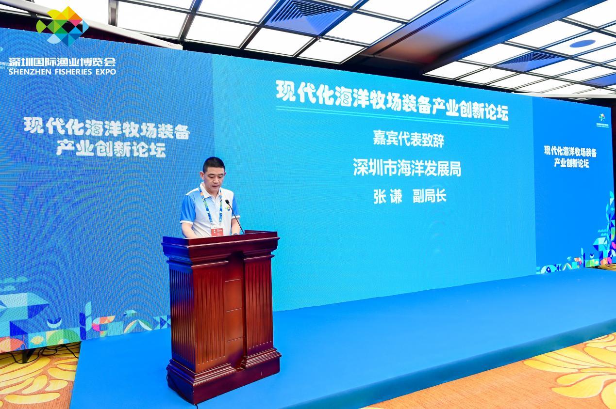 5月17日,在2024深圳国际渔业博览会开幕之际,由深圳海洋融创研究院主办,联合宏东渔业、中国联通、中国船舶集团、中国交建等集团成员单位共同举办的“科技赋能,融合创新,耕海牧渔”主题现代化海洋牧场装备产业创新论坛在深召开。论坛特邀涉海政府单位、海洋牧场相关公司、龙头企业等领导和专家到场,从深远海养殖、海洋装备、蓝色金融等相关产业发展角度共论海洋牧场蓝色未来。