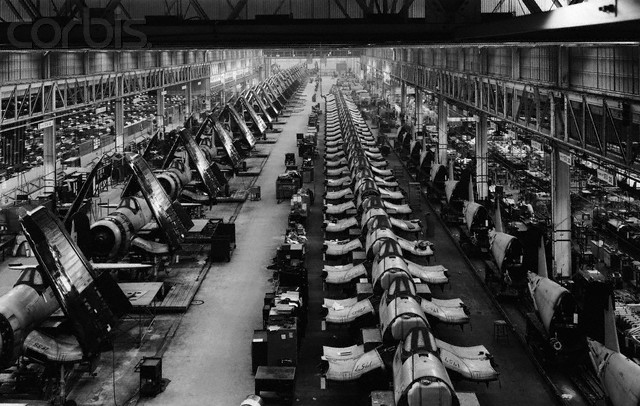 多亏了1939年开始的重整军备取得的早期先手地位,美国的飞机生产才得以开始加速。随着美国的飞机生产转入高速运转,德国和日本便逐渐无法与美国的工业基础相匹敌了。