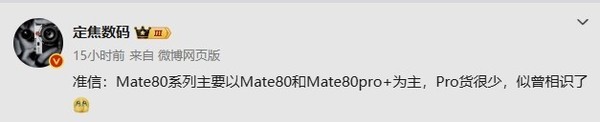 近日,有数码博主爆料称,华为Mate 80系列将采取差异化备货策略,Pro版供应量较少,而标准版和Pro+版本将成为主推机型。