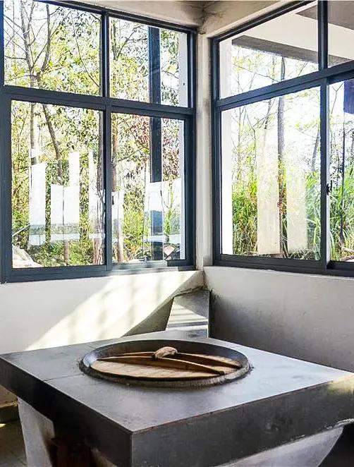 喜欢安静就去看书,喜欢书法就去泼墨挥毫,喜欢喝茶就去“拾光”茶室,赤壁羊楼洞青砖茶驰名中外,最特别的当属壁炉,冬天坐在沙发上来一次“围炉夜话”,氛围感满满,一切都是居家的样子。