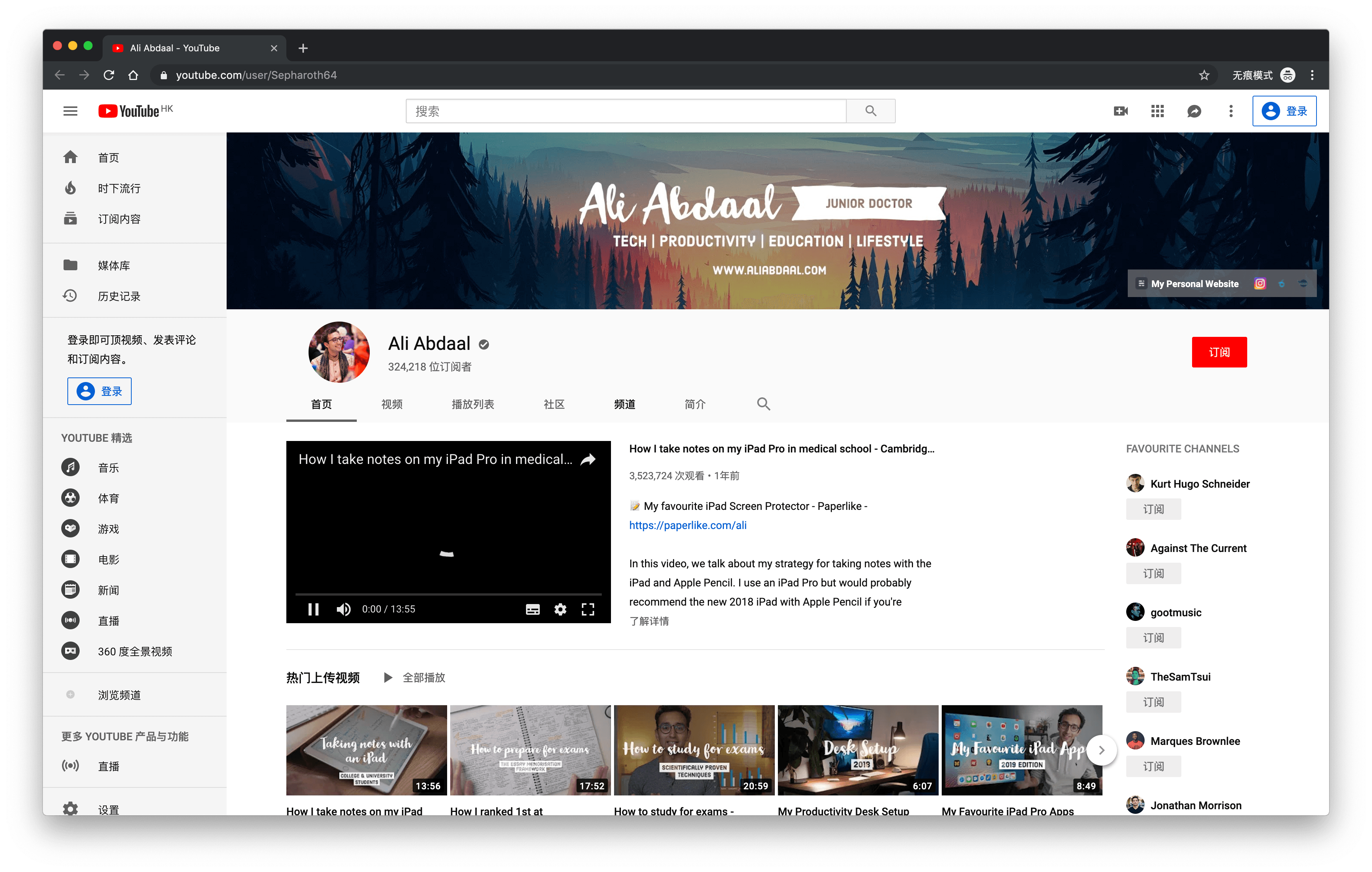 Ali Abdaal:一位剑桥毕业的医学生,目前是一名驻院医生。或许大家都熟知,学习区博主的专业通常就是医学和生物。所以 Ali 的业余 YouTube 就是有关学习的,他经常使用最新的科技产品,将科技的手段融入工作学习的流程中,非常具有参考意义。另外有网站和播客。