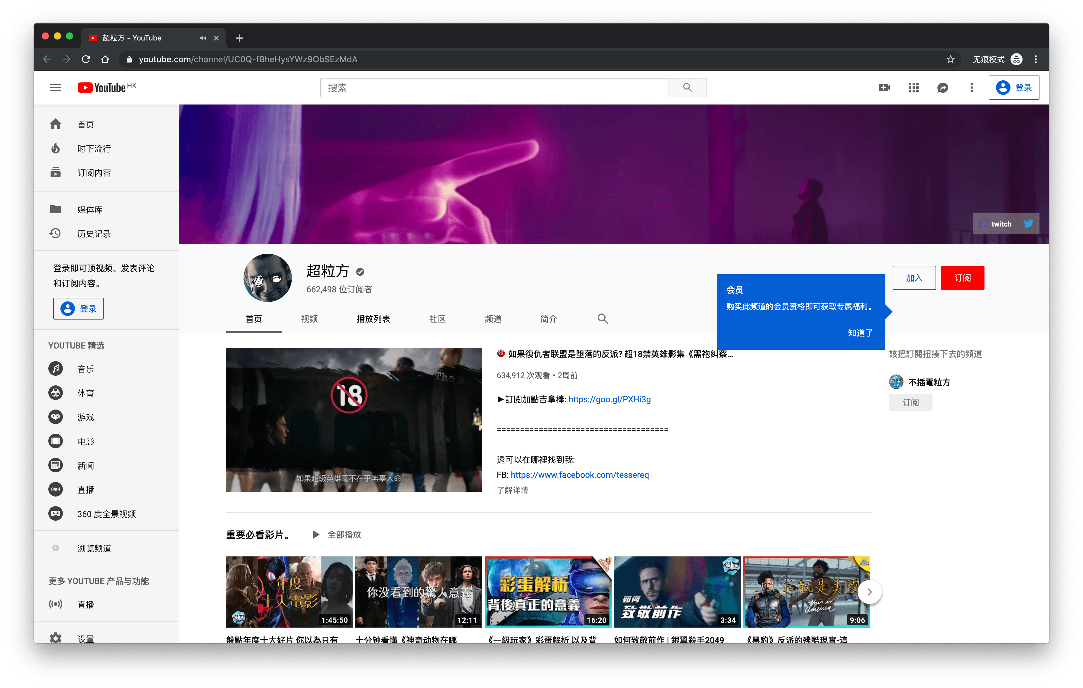 之前在 YouTube 上因为漫威的相关内容关注了「超粒方」和「加點吉拿棒」(中文,有字幕),超粒方做的影评视频都挺有意思,不只是简单地讲剧情或彩蛋,其中会穿插很多电影专业知识和文化背景,总能看到一些意想不到的新知识点。