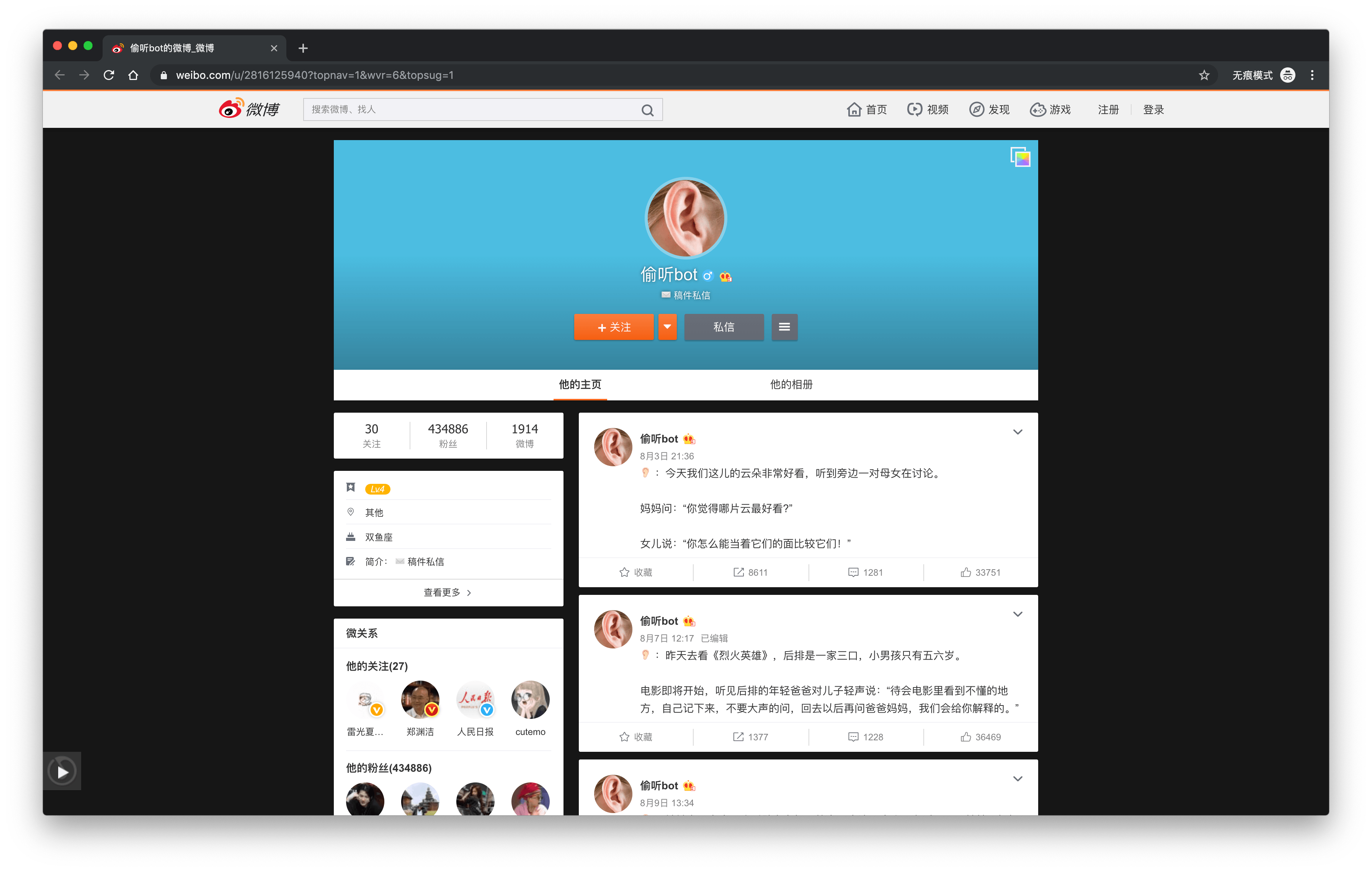 - 偷听bot:我们靠听取的生活,小细节真的很美好。