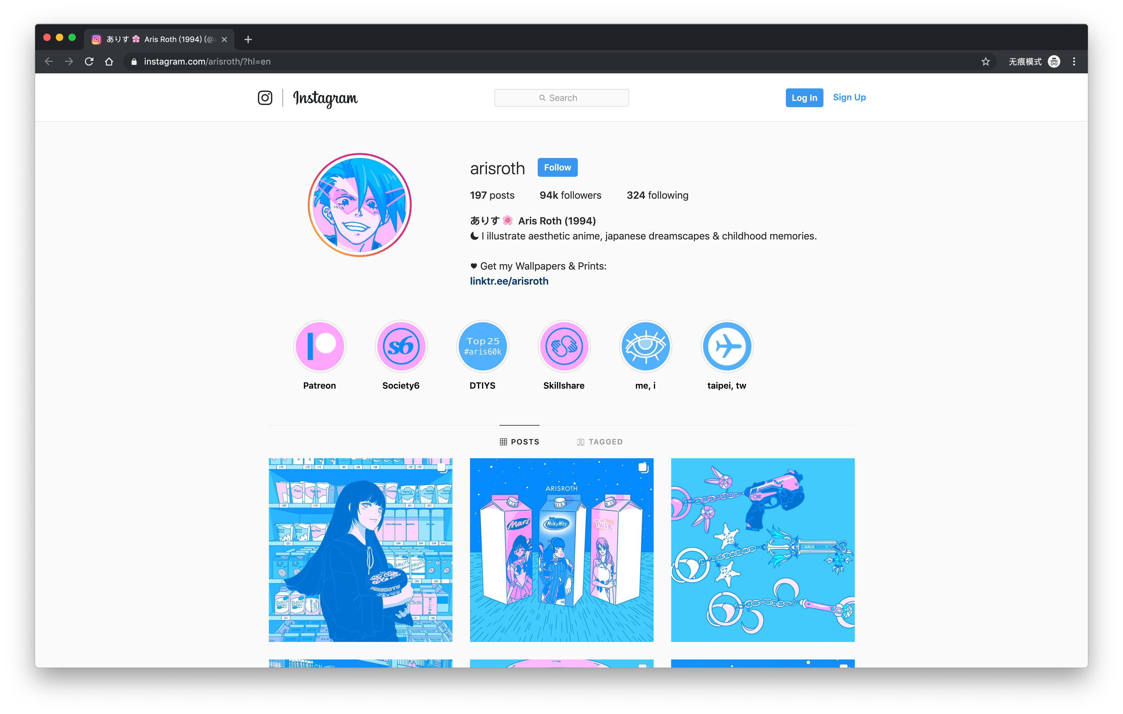 @arisroth:偏爱用浅蓝和粉红色彩彰显画面的画师,他的作品充满日本梦幻和童年的回忆。