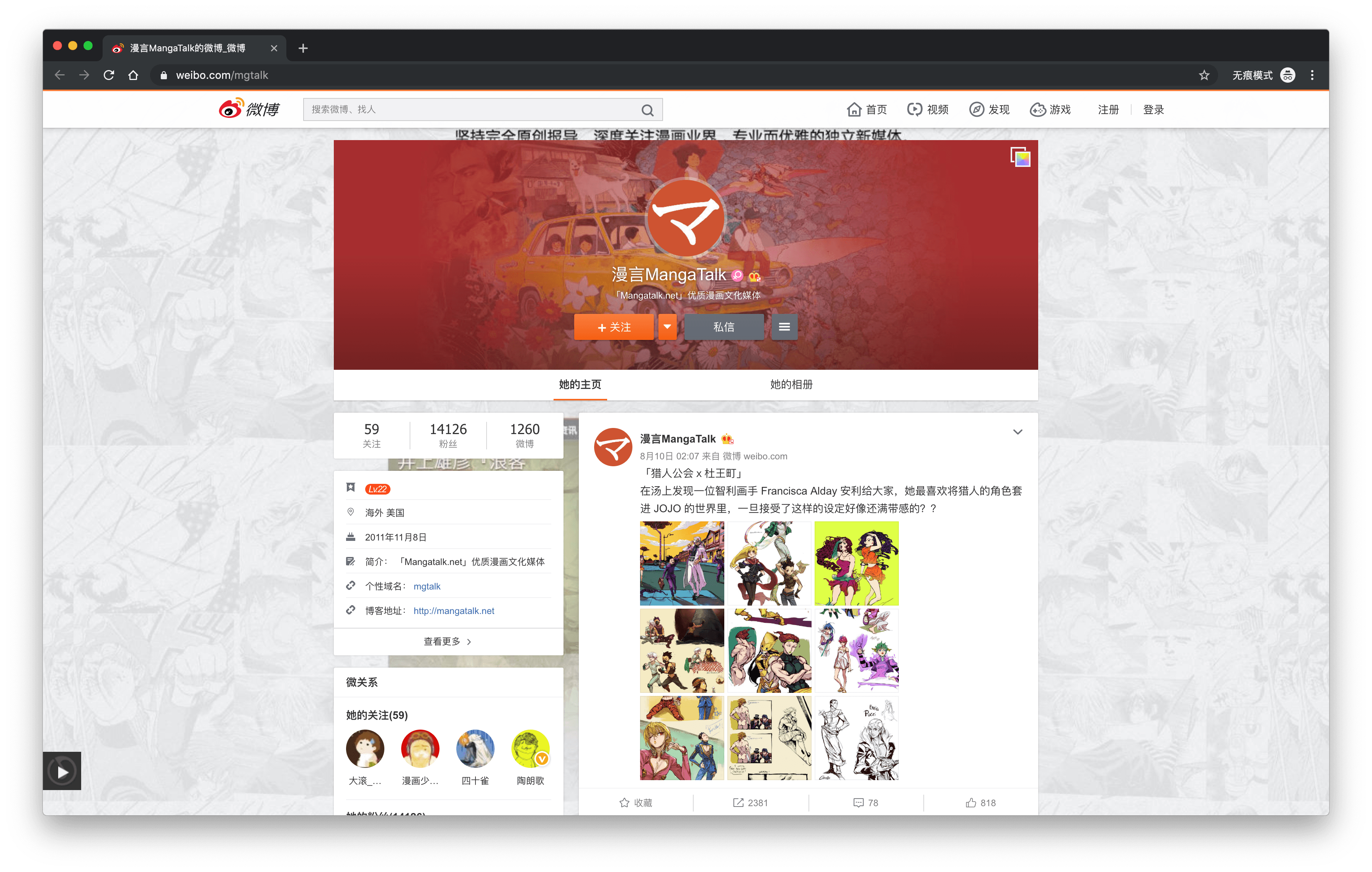 我也推荐两个和漫画相关的微博号吧,想了解漫画历史、解析还有推荐的可以关注: