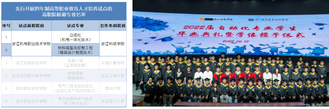 2015年,学校自动化(机电一体化技术方向)和材料成型与控制工程(模具设计与制造方向)2个专业成功入选首批浙江省四年制高职人才培养试点项目,成为唯一一所有2个专业入选的高职院校,学校办学层次实现新的突破。