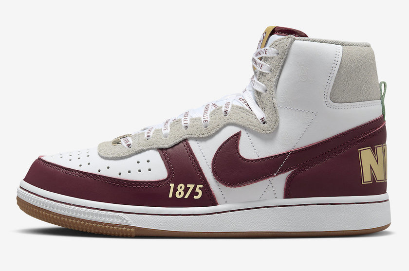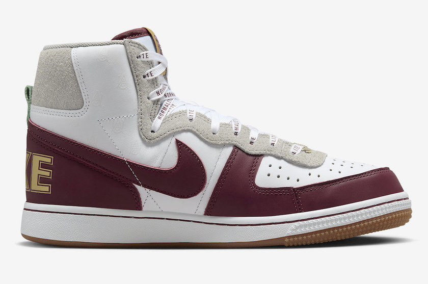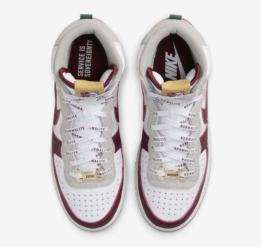 最近一双全新的 Nike Terminator High “Alabama A&M University”公布了官图。整双鞋采用白色搭配酒红色覆面,灰色点缀,鞋头外侧印有 1875 字样,代表学校成立年份,鞋舌处印有学校斗牛犬吉祥物 Butch 图案,鞋带处的 Normalite 字样代表着每年向来自阿拉巴马州以外的优秀学生提供的助学金,同时鞋垫处印有 Service Is Sovereignty(服务就是主权)字样。据悉这双全新的 Nike Terminator High “Alabama A&M University” 将于今年正式发售。