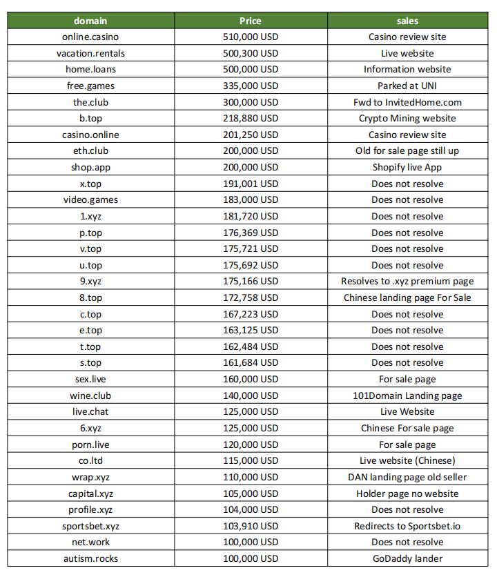 其他九个扩展域均有一个高达六位数美元的销售上榜,下面我们一起来看看都有哪些域名!