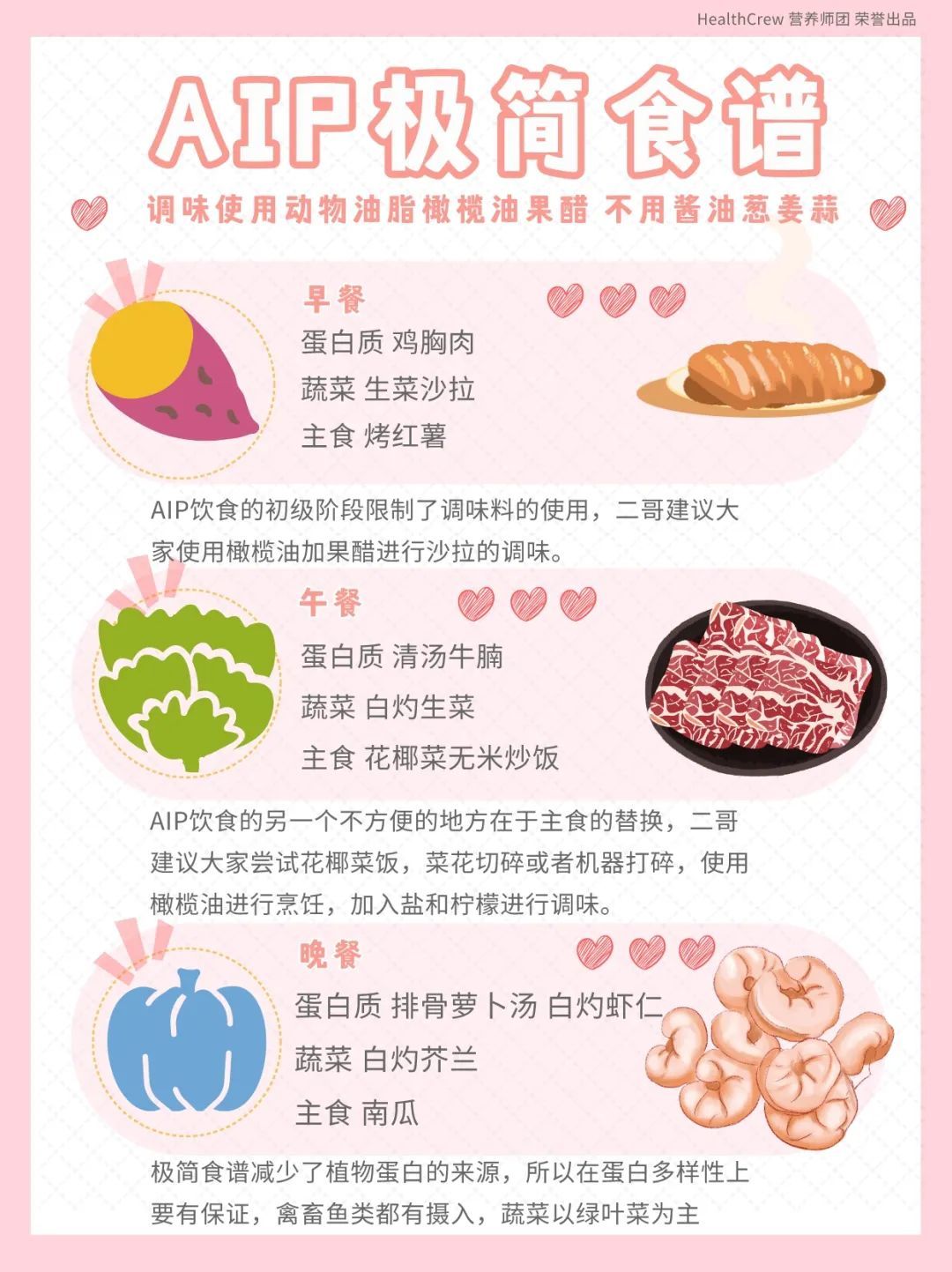 二哥并不推荐严格的AIP饮食法,一直遵循极简饮食方案,将很多对身体有益的健康食物不经测试便去除,对于长期健康不利。