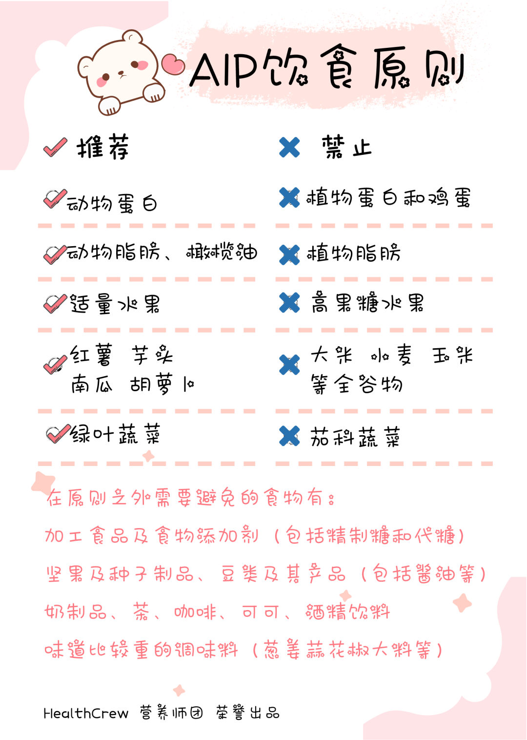 不论是已经确诊的人群还是有过敏症状的人群,AIP饮食都只是一个经验性的解决方案。免疫性疾病的病因和诱因非常复杂,AIP饮食是辅助治疗的手段,没有治愈疾病的功能。