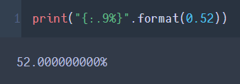 百分比格式:{}里面的数字9是百分比格式小数后面的0。不要0就写0。