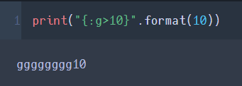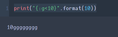 {}里面的数字10是长度,格式化的值长度没有达到就用{}里的g来填充。