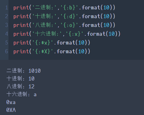 b、d、o、x 分别是二进制、十进制、八进制、十六进制。