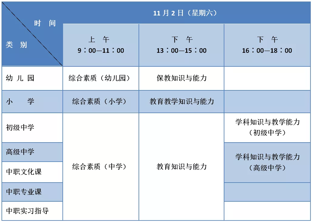2019年下半年中小学教师资格考试将于本周六11月2日 举 行