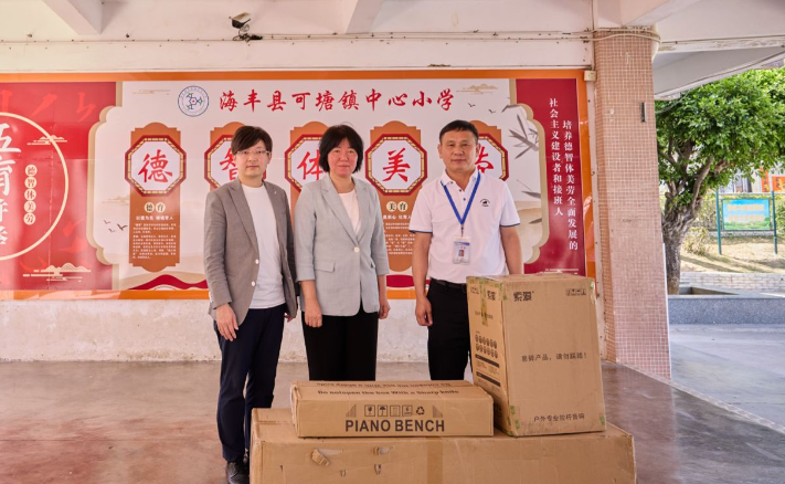 捐赠仪式上,凌海英与张文濠向海丰可塘中心小学捐赠了电子钢琴和音响设备。这些音乐器材承载着大湾区志愿者的爱心,将为孩子们打开音乐世界的大门,助力他们追逐音乐梦想。