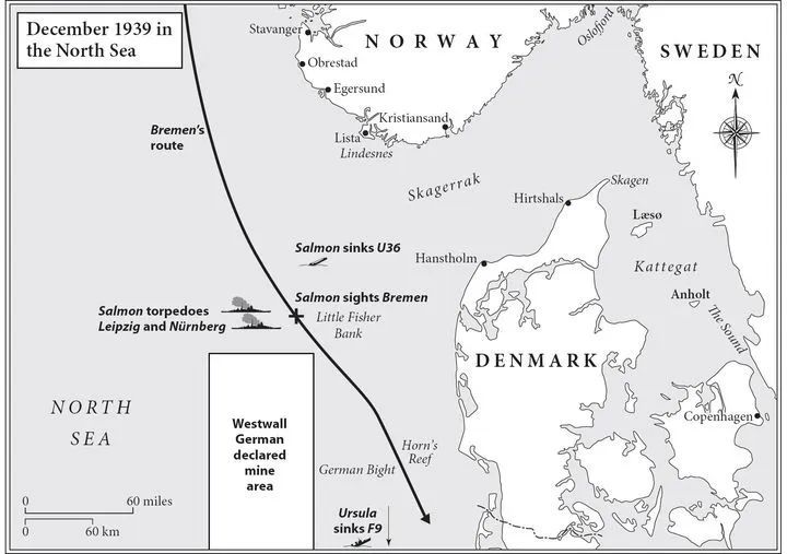 由于没有发现飞机,艇长比克福德少校决定浮出水面,以火炮逼停这艘巨轮。9点40分,“三文鱼”号浮出水面,开炮并发出信号,要求停船。结果却招来了一架Do18。眼见形势不利,英国人不得不再次下潜。此时“不莱梅”号尚处于英国鱼雷的射程极限以内。如果开火,尚有机会。但是一番权衡之后,比克福德少校还是决定放弃。显然是因为射击条件不理想。命中概率太低。就这样,“不莱梅”号有惊无险,于12月13日抵达德国。