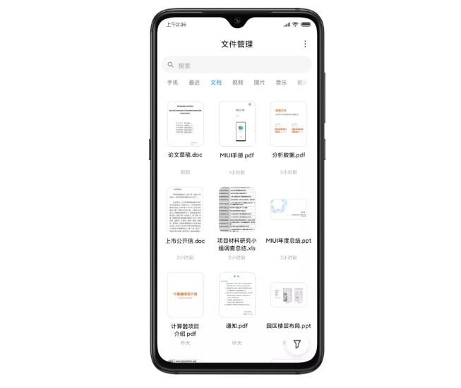 A:大家平时手机中会收到很多不同来源的文档,有微信、钉钉、邮件甚至是云盘,没有一个地方可以统一查看和管理,很多IM软件中对文档的管理也不够友好,比如老板发来的文档很快就会被聊天记录刷走,另外由于IM自身的存储策略,也会碰到想找某一个文档时,好不容易找到了,结果尴尬的发现文件已过期。因此MIUI 11文件管理器汇集了手机上所有收到的文档,方便用户在一个地方统一管理。