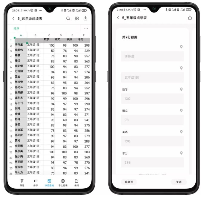 除了以上两点,我们还与WPS联合首发了一个创新功能,叫“掌上看表”,可以将多行复杂的表格一键变为掌上阅读模式,适应手机查看。
