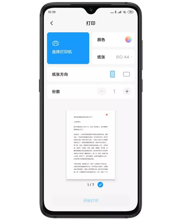 A:是的,使用起来非常简单,选中想打印的PDF文档或者照片,点击发送-打印,立刻就能看到预览界面,可以直接进行打印或者快速进行打印设置。目前手机端打印的人还不是特别多,但我们相信随着移动办公能力的增强,手机打印一定会成为手机最基本的功能。