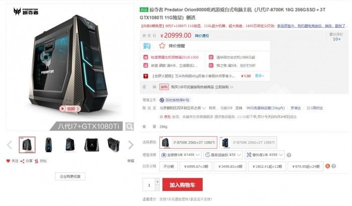 八代i7-8700K 16G 256GSSD+2T GTX1080Ti 11G独显售价为16999元,3T GTX1080Ti 11G独显版售价为20999元。而在北美地区起售价位1500美元,预计将于今年7月份发售。