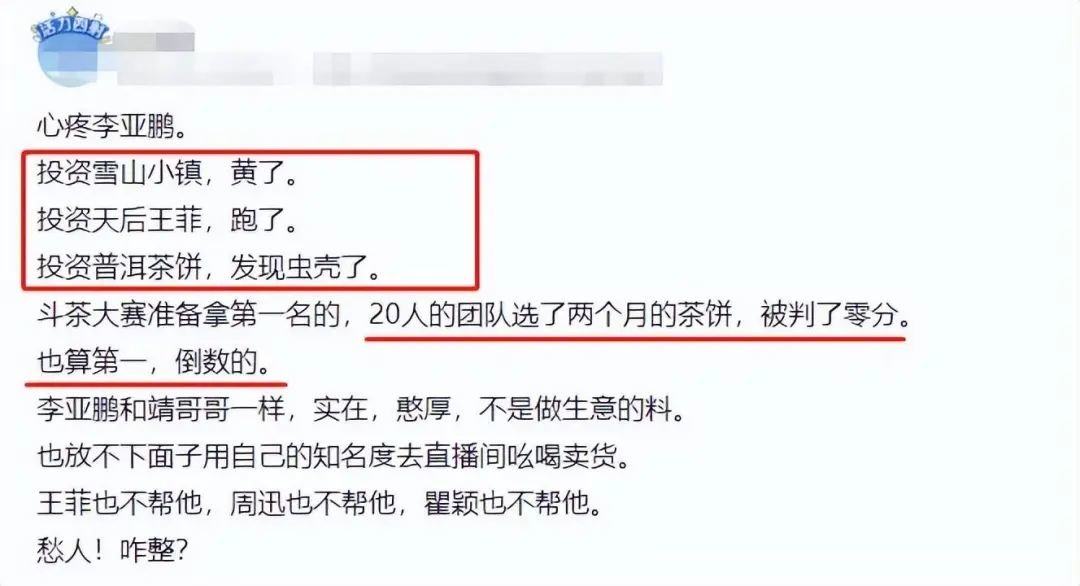 这些年李亚鹏跨越了很多种行业,酒吧老板、房地产开发商、创办公益、收藏古玩、做短视频、直播卖货、承包茶厂,终于彻底把自己折腾成了失信人。