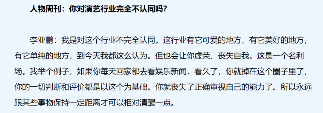 ▲图源:南方人物周刊《我不是个放浪形骸的人——对话李亚鹏》。