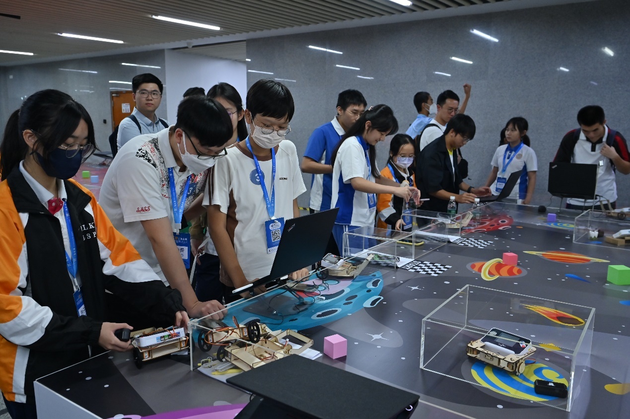 由香港赛马会慈善信托基金捐助,香港中文大学(港中大)工程学院及教育学院联合主办的中大赛马会「智」为未来计划(下称“计划”)于8月19日在深圳市南山区港中大深圳研究院举行大湾区「智」为未来科技体验营2024(下称“体验营”)。体验营一直深受学校、学生及家长欢迎,每年暑假吸引逾百名香港本地中学生报名。今年更首度移师至深圳举行,吸引逾300名来自香港及内地多个城市的师生参与,场面热闹。