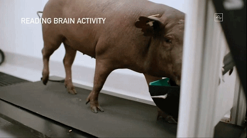 为了对Neuralink的效果进行验证,研究人员在猪的体内植入脑机接口,并展示出来。