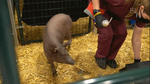 选择猪这种动物,是因为它们与人类的大脑相似性较高,同时也易于保持快乐。