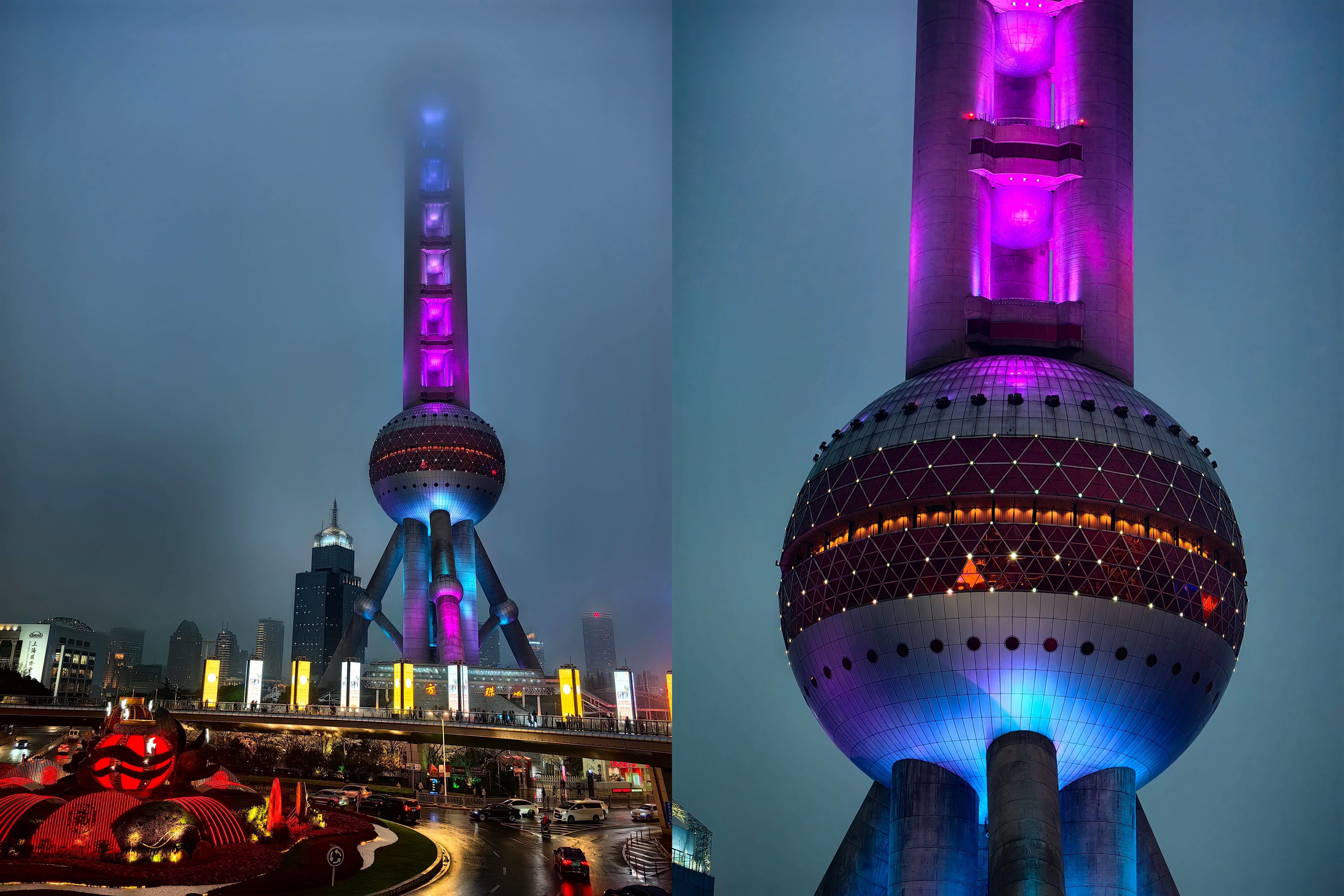 ▲ 华为 P60 Art 1× / 3.5× 镜头下的雨雾缭绕的东方明珠。