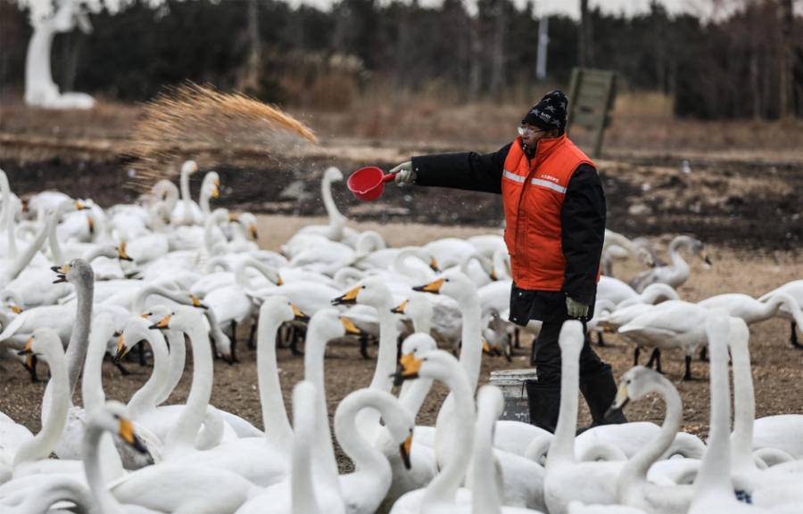 为了更好看护好这些大天鹅,村里还专门请了管理人员,巡护、喂食。在天鹅湖旁的车祝沟村,村里也每年冬天专门拿出2万块钱购买玉米粒,把大天鹅留住,给村里增加人气。
