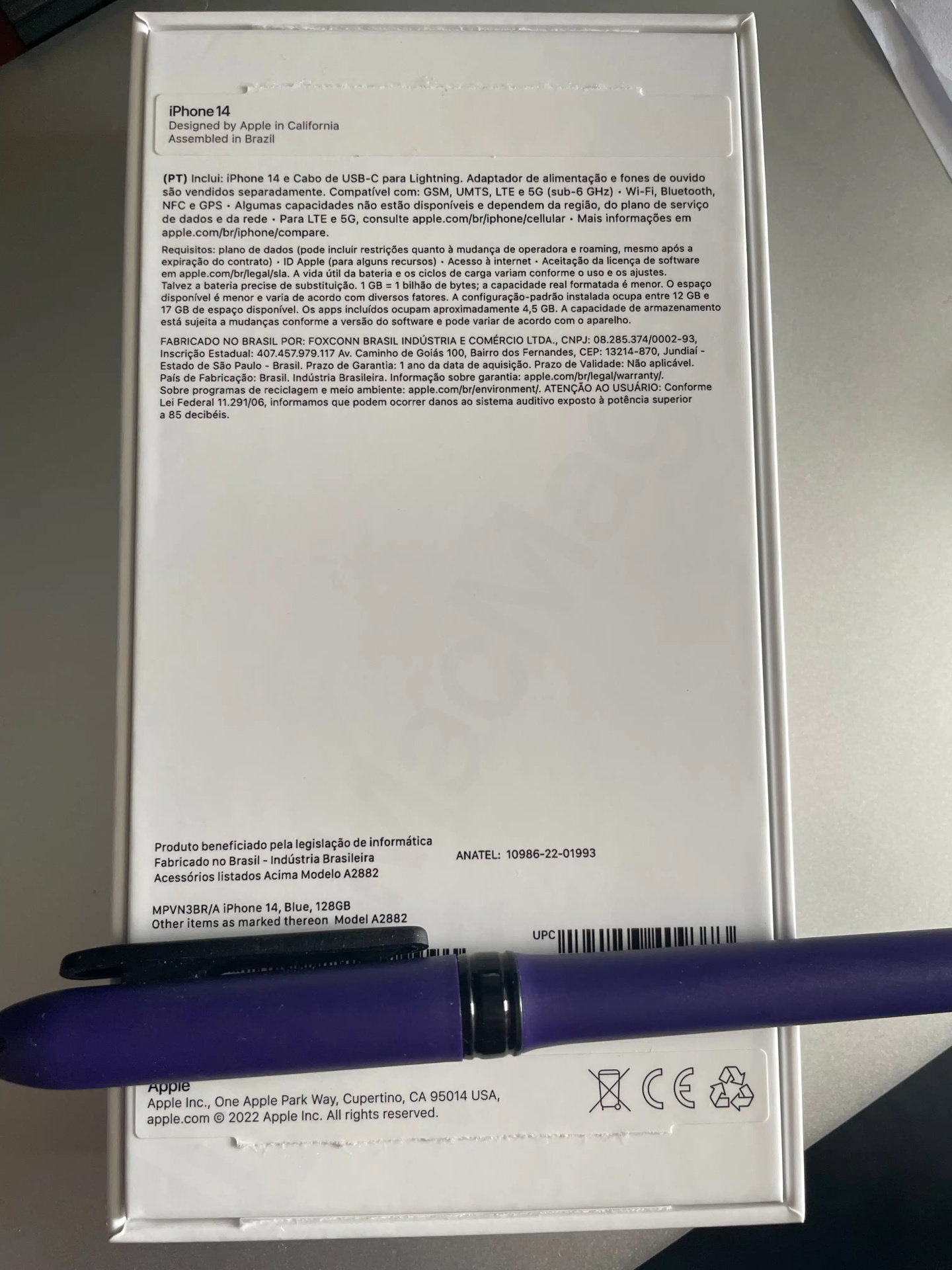 当地网友购买一台蓝色 128GB 的 iPhone 14 机型之后,意外在包装上发现了“Assembled in Brazil”的字样,设备的部件号以“BR / A”结尾,这表明 iPhone 是在该国组装的。