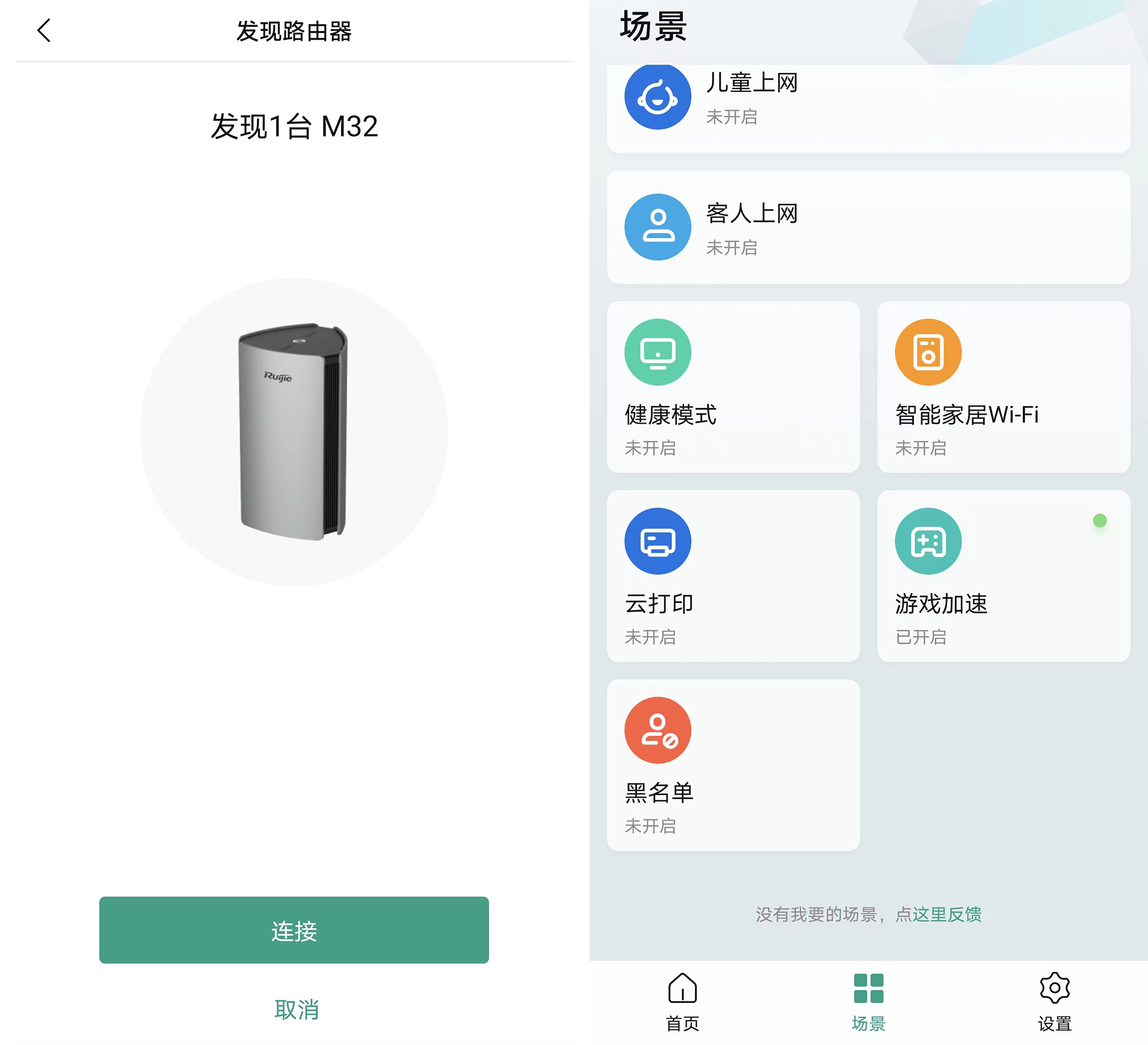 锐捷星耀M32路由器的设置非常简单,只需要下载星耀APP客户端,几个步骤就能完成设置开始工作。客户端的界面非常明晰,联网设备一目了然。