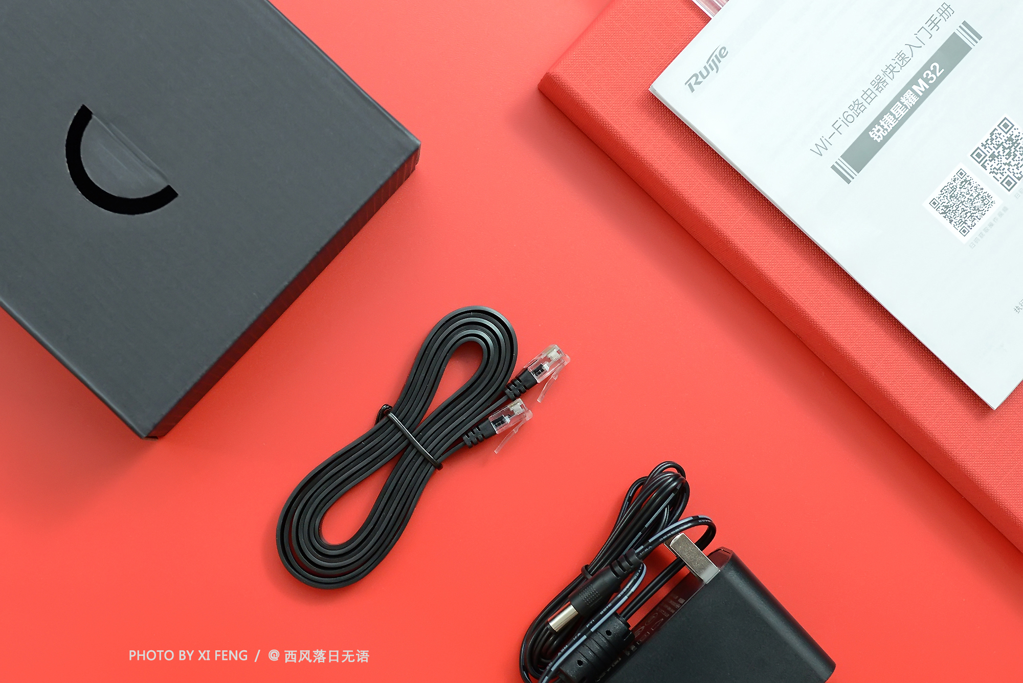 配件除了必不可少的说明书/质保卡,还有电源适配器和超5类网线各一根。