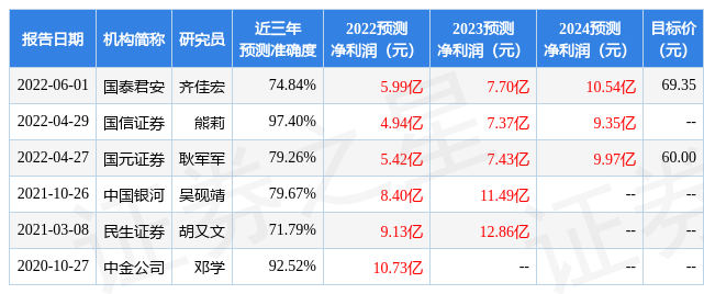 以下是详细的盈利预测信息: