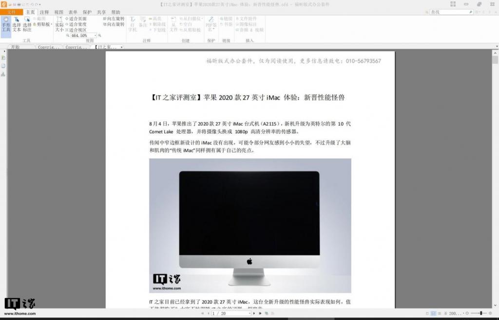 当我们收到 OFD 文件后,只需要选择用《数科 OFD》打开这个文件即可,IT 之家测试打开一个 5.8MB 的 OFD 文件速度很快,放大缩小文档界面,也很流畅自然。