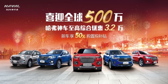 最后,还有一波福利带给你!在岁末,哈弗品牌开启全新钜惠活动,庆祝用户即达到500万。即日起至12月31日,购买包括全新哈弗H6冠军版在内的哈弗H系车型均有不同程度的优惠,现在出手购买说有就有,还不赶快走起!