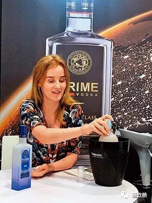 Prime伏特加的美丽出口经理Elena,示范把Cool版冷却后,瓶身会因特殊涂料而变蓝。