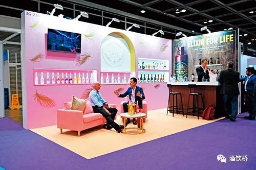 Amber酒业集团(ABG)的摊位算是烈酒区中最舒服的,旗下有气泡酒、Rooster Rojo龙舌兰,以及拉脱维亚、爱沙尼亚、俄国等国的烈酒。