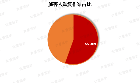 “女童保护”发现,在301起案例中有,有167起是施害人多次作案,占比55.48%,包括对同一受害儿童多次性侵,也包括多次对多名儿童多次性侵。301起案例中,施害人对同一受害人多次实施性侵的有47起,占比15.61%;一人性侵多人的案例84起,占比27.91%。在没有外界力量阻止的情况下,施害人往往多次作案,不会自动终止,持续作案往往达到2~3年,本年度曝光案例中,最长时间长达22年。这种现象比较集中地反映在熟人作案中。