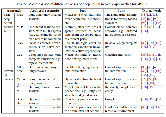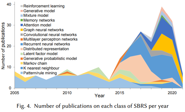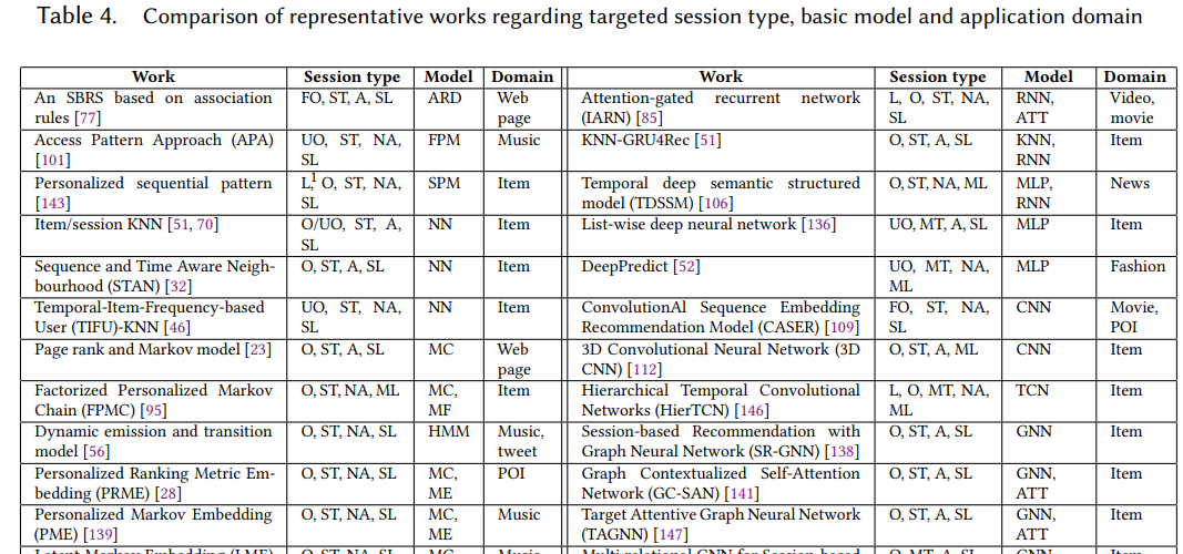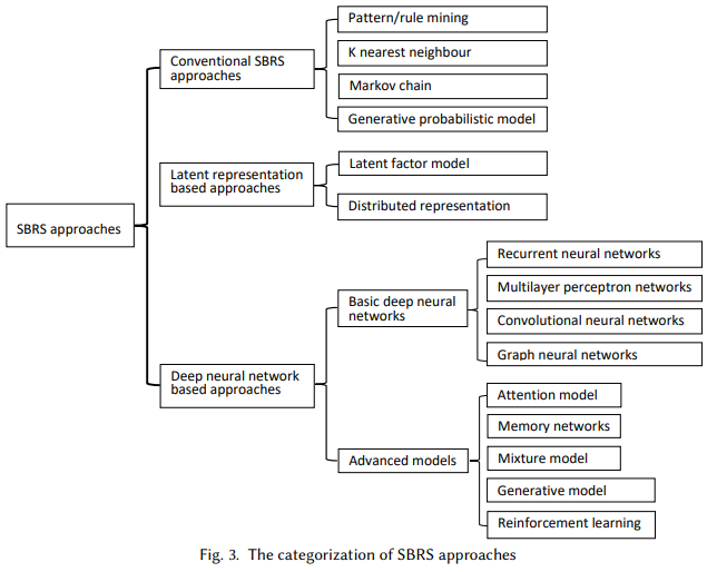 研究者对每一类方法简单介绍了主要的技术细节,从而给读者对基于会话的推荐系统的当前进展提供一个深入的了解。