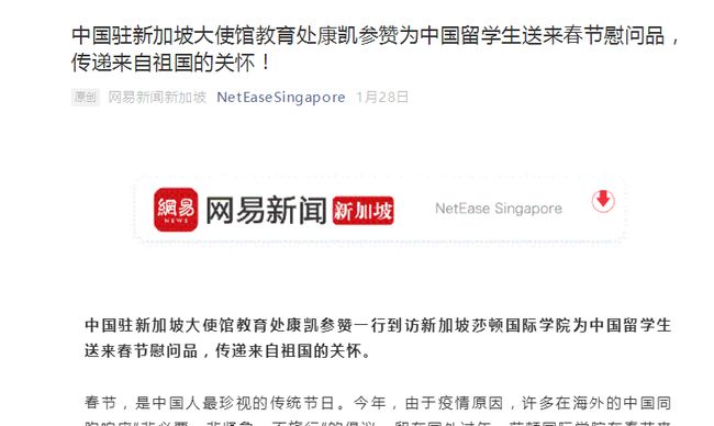 在春节前夕,新加坡莎顿国际学院也荣幸地接待了中国驻新加坡大使馆参赞的到访,为莎顿国际学院的中国留学生送上新春礼包。同时也受到了新加坡狮城热线、中国新华社、网易新闻、中央电视台等多家媒体的新闻报道。