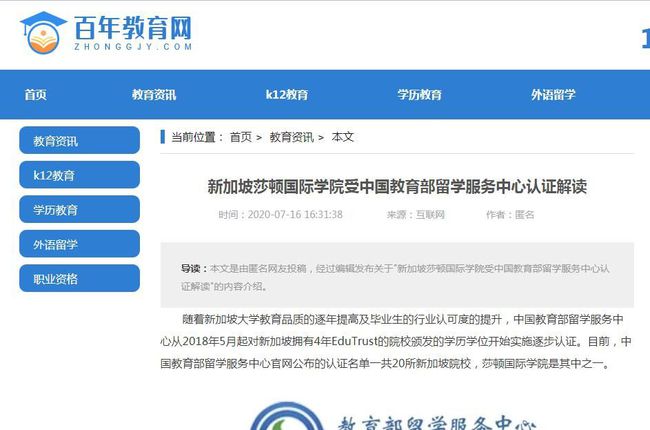 莎顿国际学院为学生提供从中学到大学各阶段课程,是新加坡4年教育信托认证院校,是中国教育部留学服务中心认证院校。美丽的独立校园坐落于新加坡市中心,内设有国际学生宿舍与餐厅,为学生提供高质量的学习及生活支持。