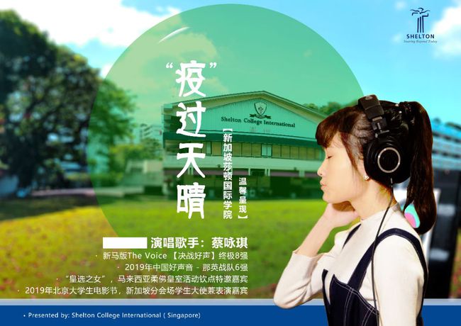 2021年,新冠疫情席卷全球,莎顿国际学院作为新加坡唯一一间以华语为主要授课语言的传媒院校在疫情期间用媒体人的方式集合了中国、新加坡、马来西亚三国的创作者共同精心制作的抗疫公益歌曲MV《疫过天晴》,以歌声传递爱与力量在狮城温情地流淌着。在疫情阴霾笼罩全球的情况下,主动肩负起社会责任,引导师生结合专业优势用新媒体等各种方式,宣传鼓振抗疫士气。《疫过天晴》由学生大使蔡咏琪温暖献声,传递正能量,受到社会各界的广泛关注与好评。