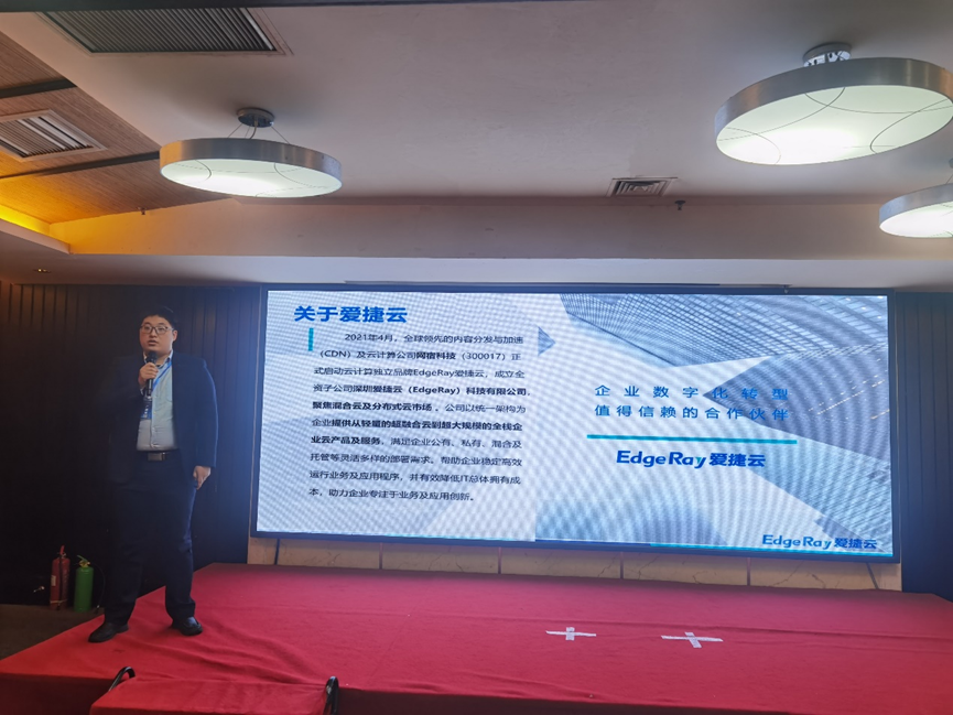 4、深圳爱捷云科技有限公司是网宿的全资子公司,集成了网宿多年CDN运营和运维经验,聚焦在私有云和混合云市场,依托网宿的自身优势为客户提供从公有、私有、托管、和混合的多样云服务,专注助力企业的基础设施和应用创新。首席解决方案架构师杜炜和大家分享了爱捷云对智能制造行业的理解以及产品是如何助力制造业的数字化转型的。